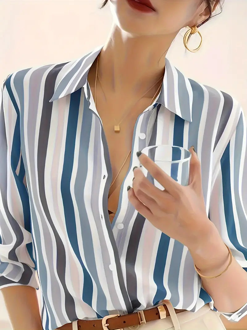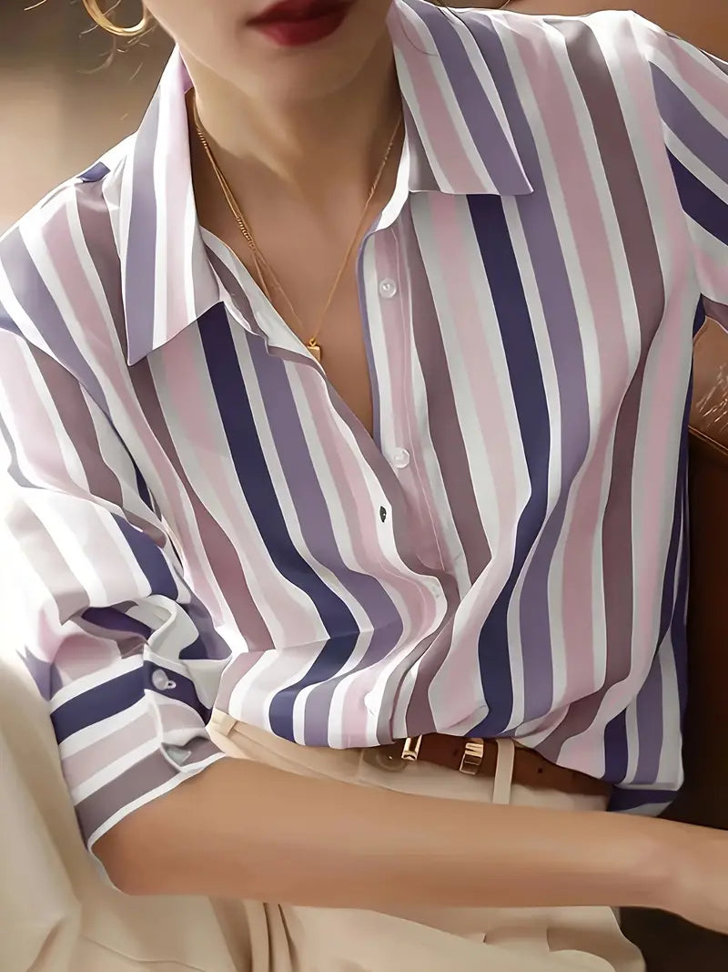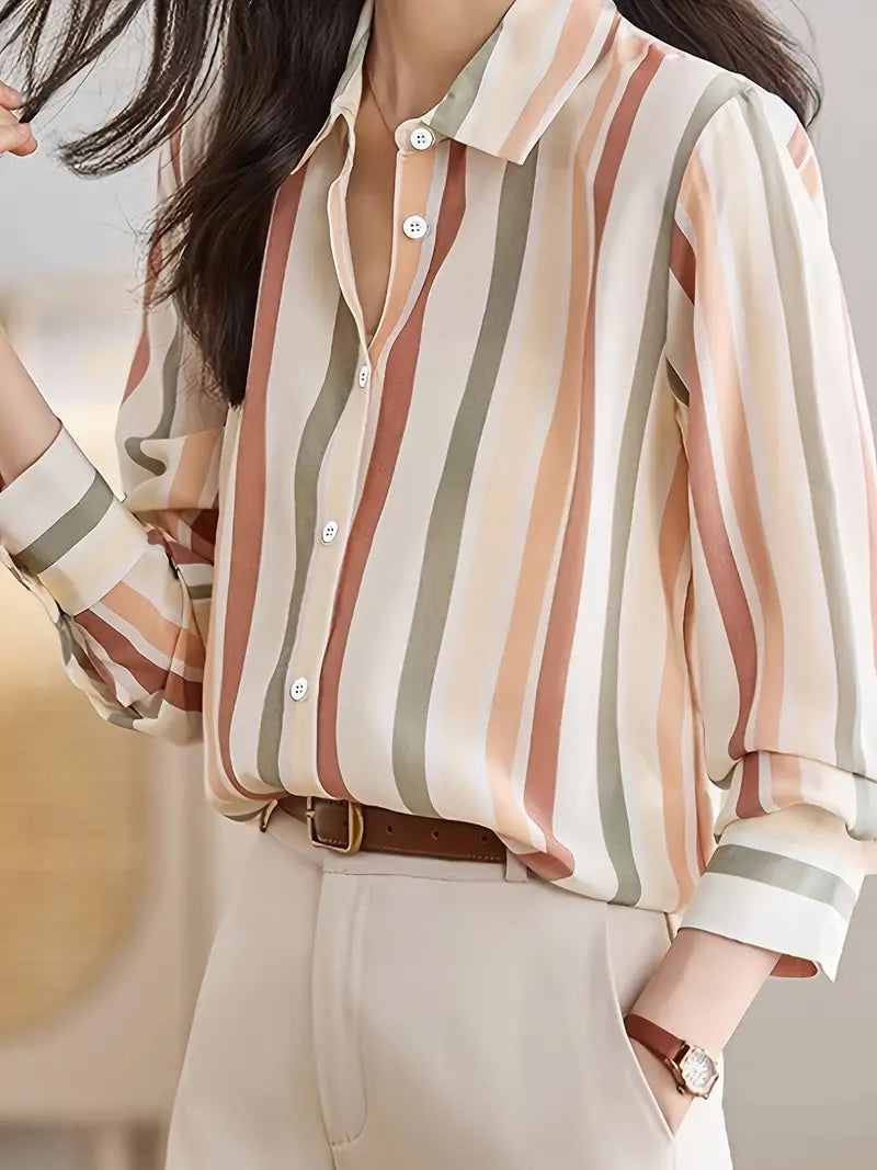 Striped Button-Down Shirt, Vintage Long Sleeve Blouse for Women, Spring & Fall Fashion